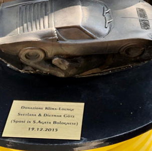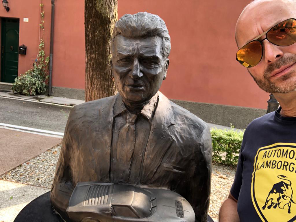 Schnell war die Idee geboren den Platz auch mit einem Monument in Bronze von Ferruccio Lamborghini mit dem Miura, zu dessen Gedenken auszustatten. Unter Leitung von Cristina Guizzardi, der ehemaligen Sekretärin von Ferruccio Lamborghini und der pensionierten Direktorin des Werksmuseums, sowie Fabio Lamborghini, wurde durch den Künstler Alessandro Rasponi 2016 begonnen eine besondere Bronzebüste von Ferruccio Lamborghini herzustellen. Die Firma Klima-Lounge® finanzierte dieses Projekt komplett, was auch an der Büste, auf der aufgebrachten Plakette verewigt wurde. Der „Piazza Ferruccio Lamborghini“ wurde 2018 vom Bürgermeister Giuseppe Vicinelli, ein großer Freund von Svetlana und Dietmar Götz, und Vertretern der Familie Lamborghini, sowie der Klima-Lounge® feierlich eingeweiht. Hierbei wurde auch die Bronzebüste in einer besonderen Zeremonie enthüllt.